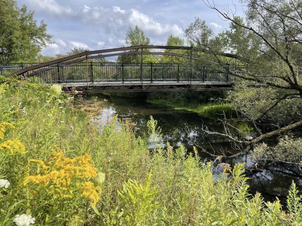 At the north end of Erwin Park is a 70’ single span covered bridge that crosses the Black River Feeder Canal and connects the towpath with Erwin Park.