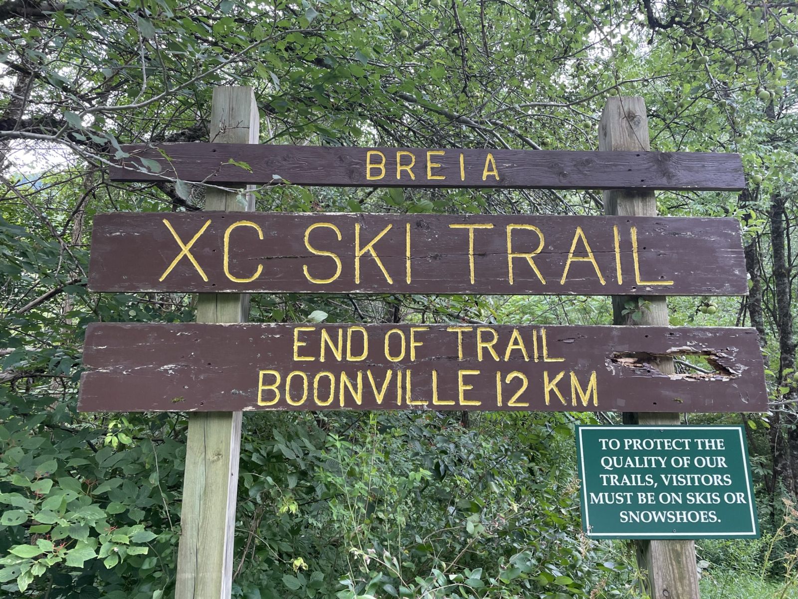 Constructed in 2005, it features hand carved signs on each end of the bridge.